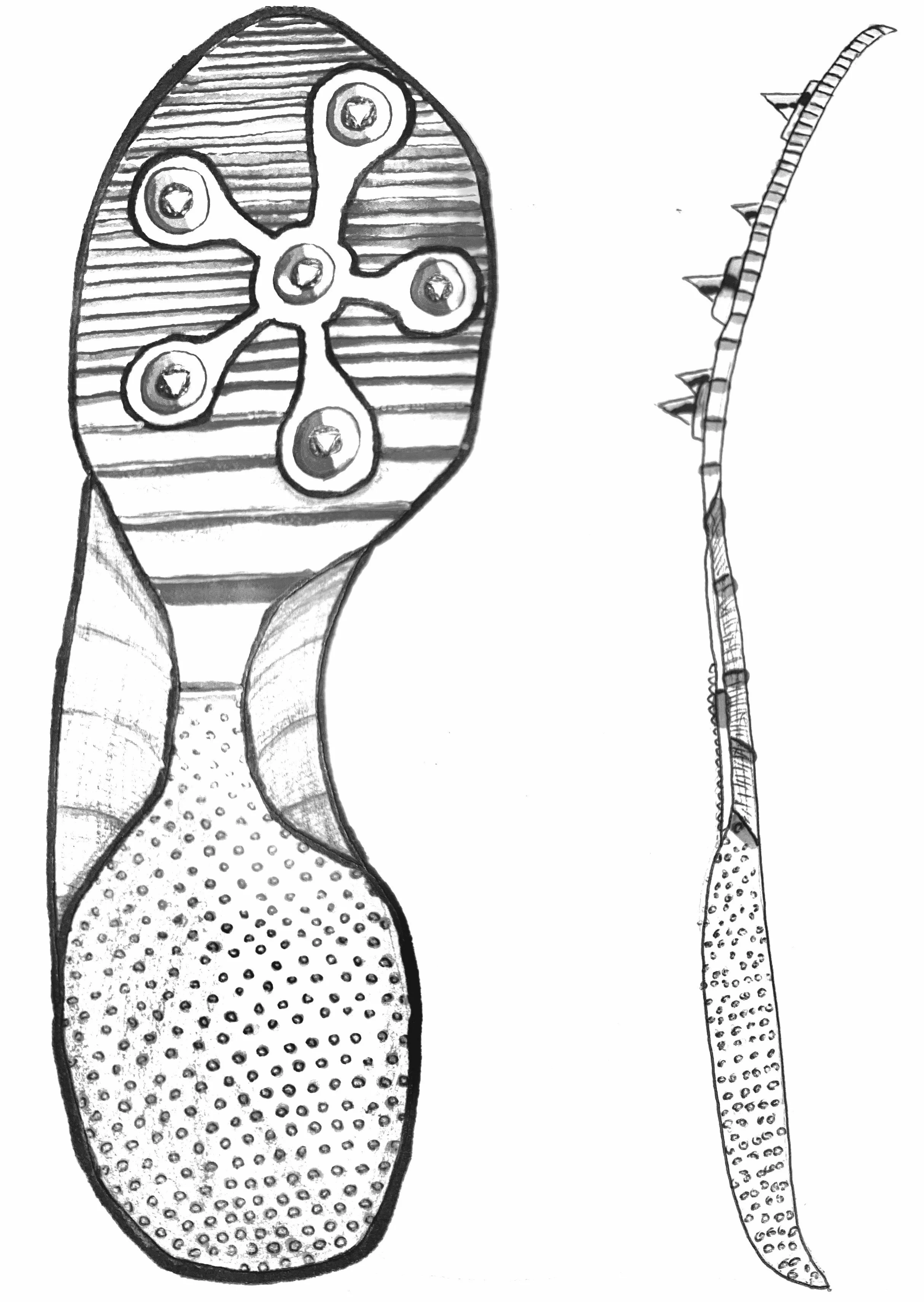 I decided to develop the second sole, with the priority of propulsion in mind, as well as its reduced impact that the heel’s foam would provide.