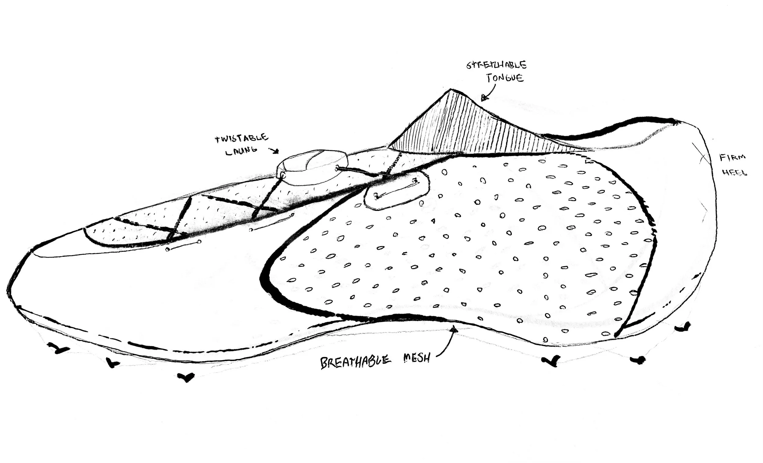 The third upper sole concept was the most promising, since it provided a breathable mesh, that would help keep the runner’s feet cool and under little pressure because of it’s lightweight.